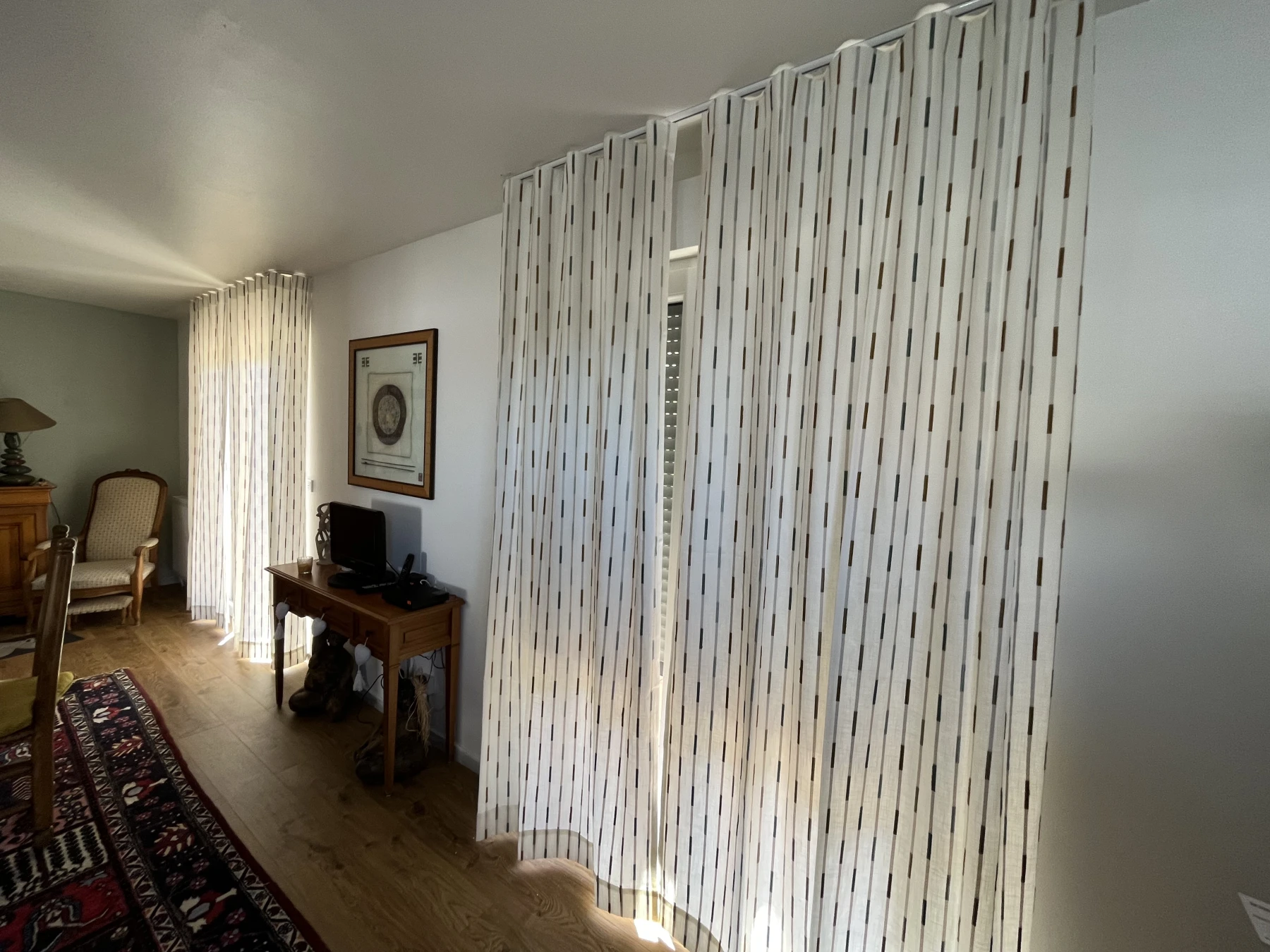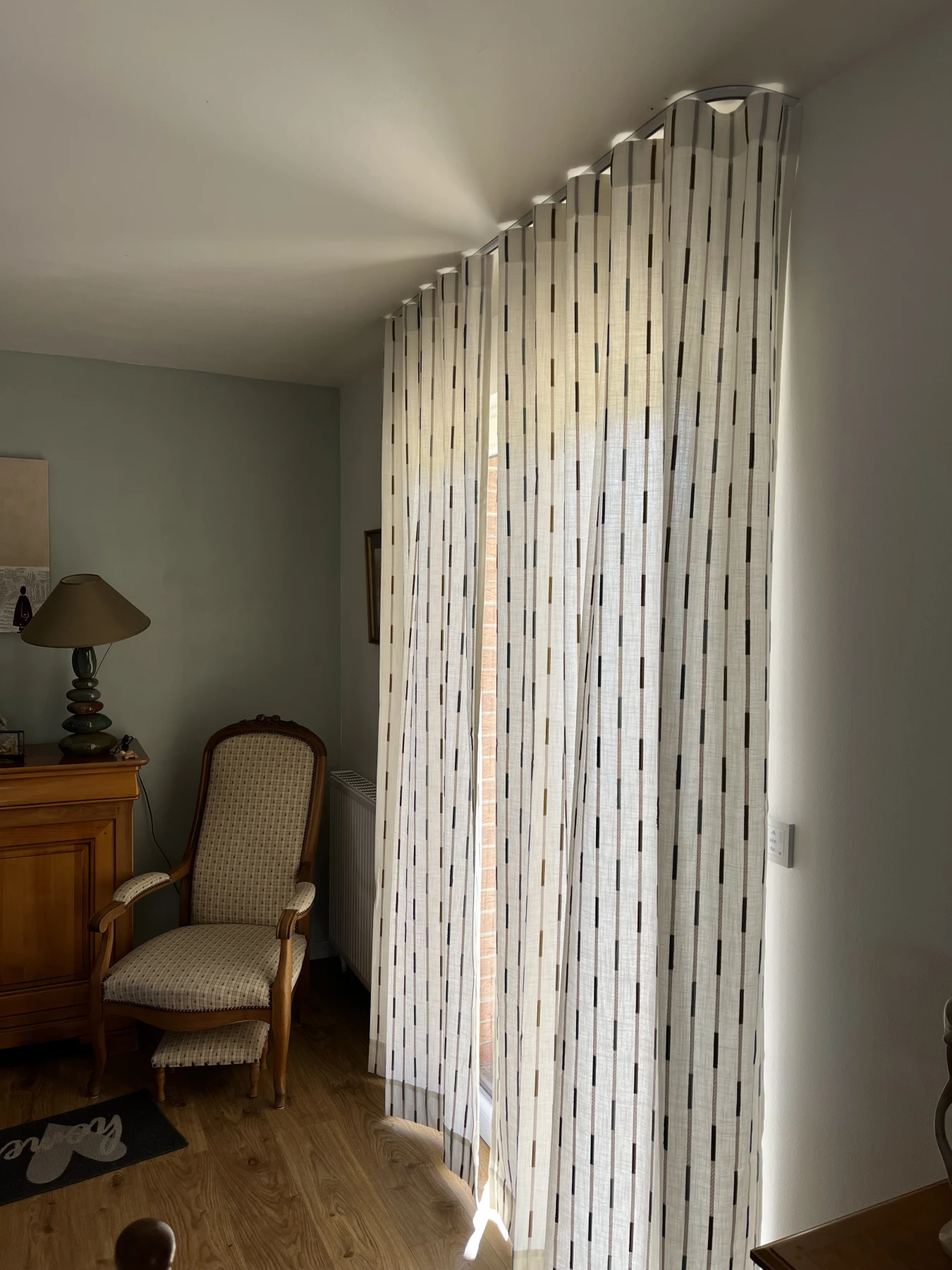 La pose a été réalisée par nos poseurs qualifiés, qui ont installé les rideaux sur des rails cintrés afin d’épouser parfaitement les formes de la pièce et d’assurer un rendu harmonieux. Ce soin du détail illustre parfaitement notre exigence de qualité et notre engagement à fournir des prestations haut de gamme.