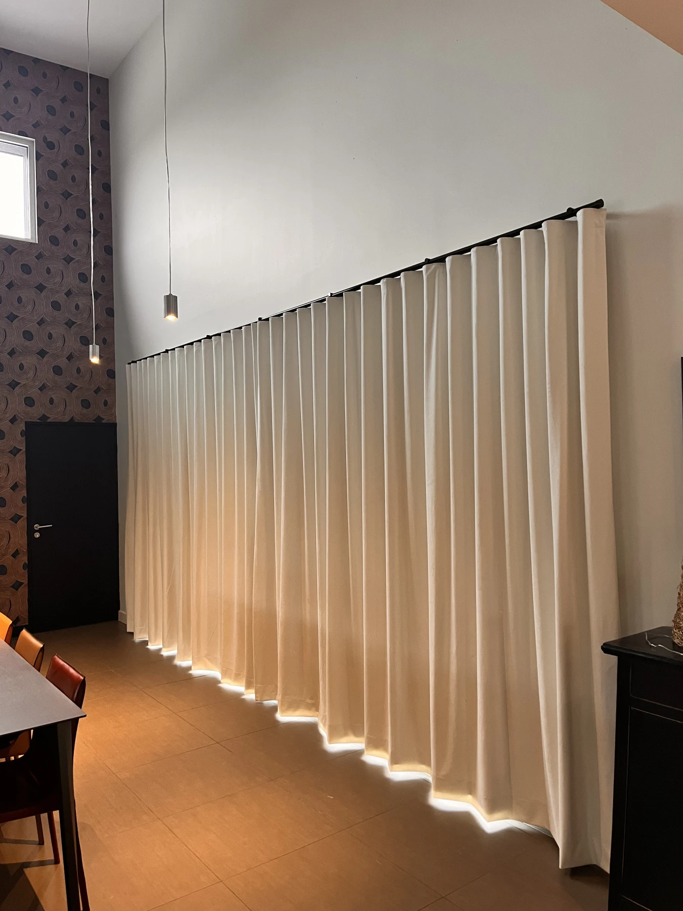 Pour ce projet haut de gamme à Mérignies, notre entreprise LES DECORS CONSEILS, spécialiste en confection et pose de rideaux sur mesure à Templeuve-en-Pévèle, a mis tout son savoir-faire au service d’un séjour contemporain et chaleureux. Situés à proximité de Lille, nous proposons des solutions décoratives personnalisées et parfaitement adaptées aux besoins de nos clients.