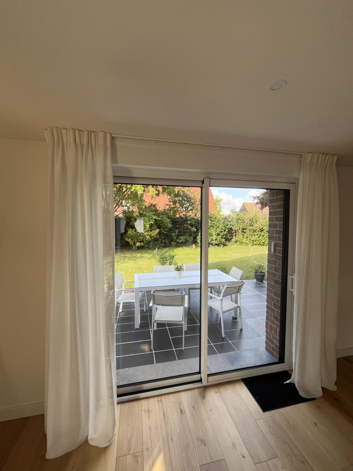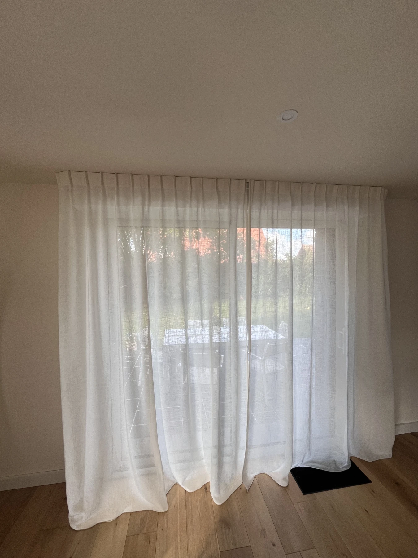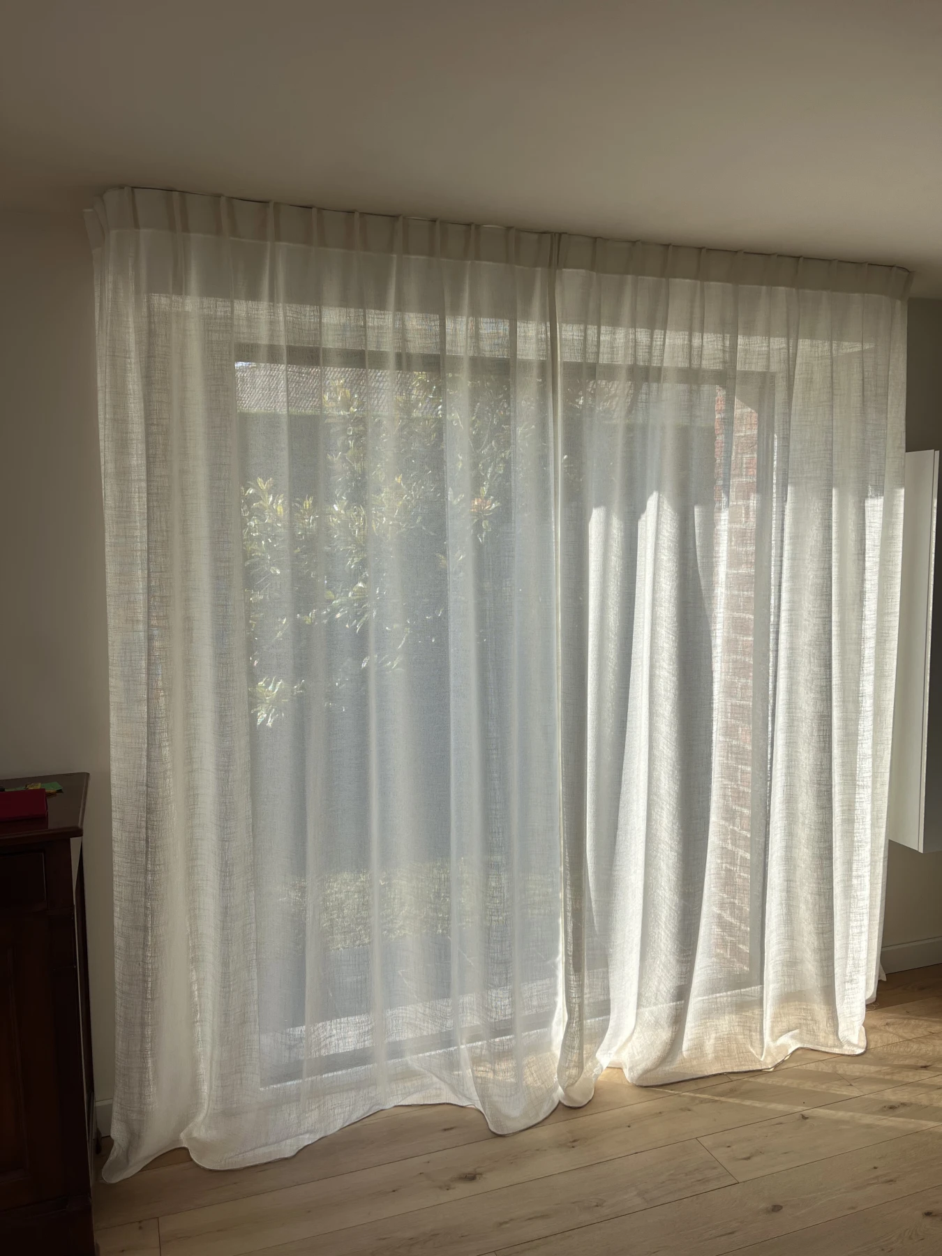 LES DECORS CONSEILS, votre spécialiste en décoration intérieure à Templeuve-en-Pévèle, a récemment réalisé un projet élégant de confection et pose de voilages sur mesure à Cappelle-en-Pévèle. Le choix s’est porté sur le voilage Eole de la maison Camengo, reconnu pour sa légèreté et son tombé naturel. Adaptés à de grandes baies vitrées, ces voilages offrent un rendu à la fois moderne et chaleureux, laissant filtrer une douce lumière tout en préservant l’intimité des habitants.