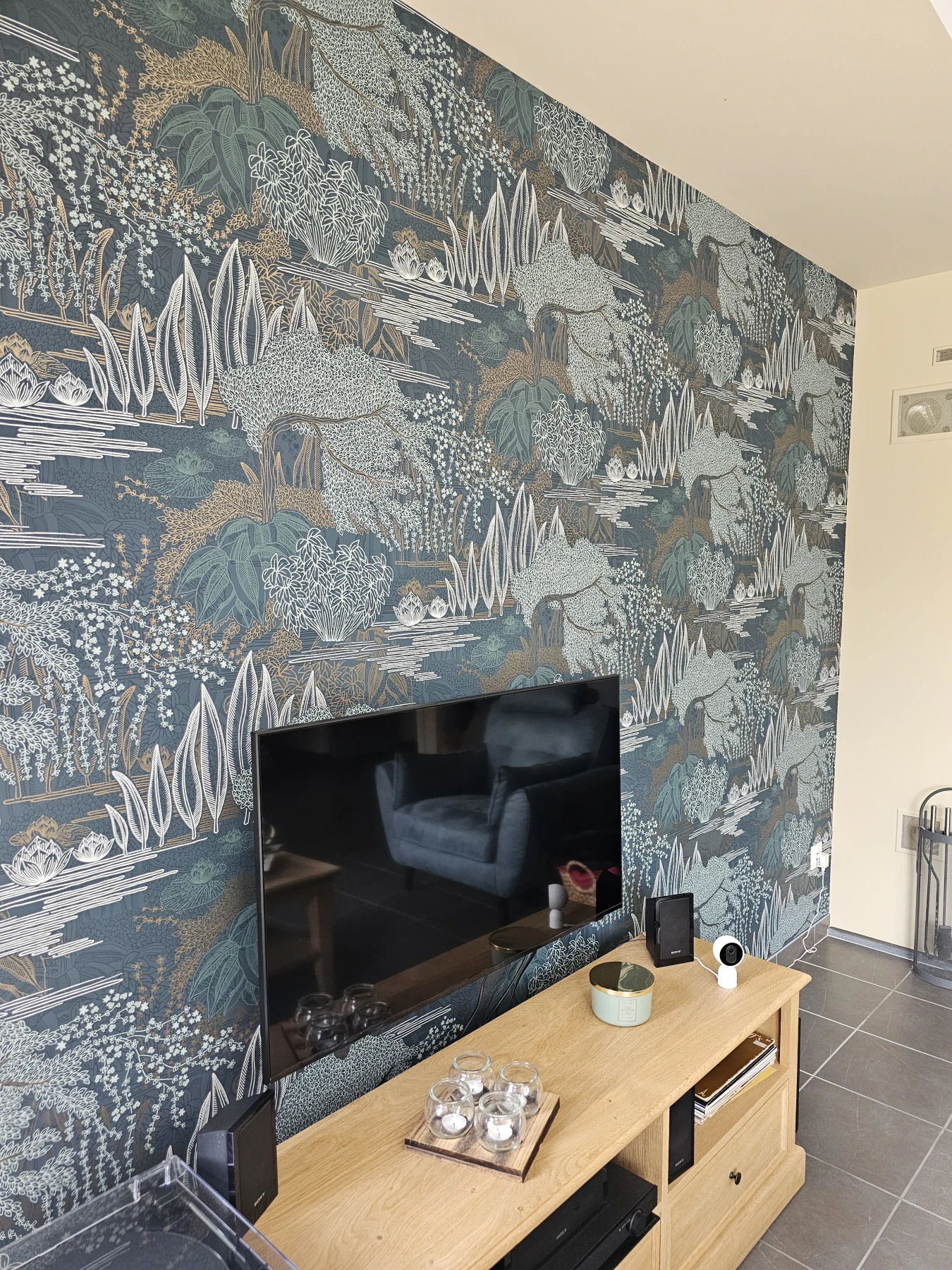 Notre équipe de peintres professionnels est intervenue pour la pose d’un papier peint à motif végétal de la marque Casamance, réputée pour la richesse de ses textures et la finesse de ses designs.