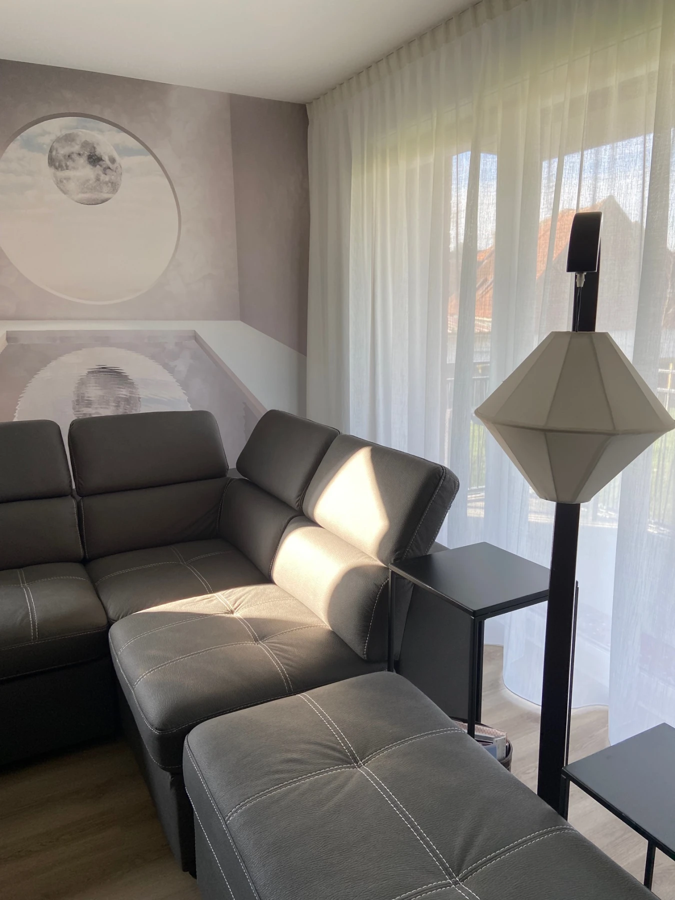 Projet déco dans un appartement à Templeuve-en-Pévèle (59) : peinture panoramique et confection de rideaux sur mesure
